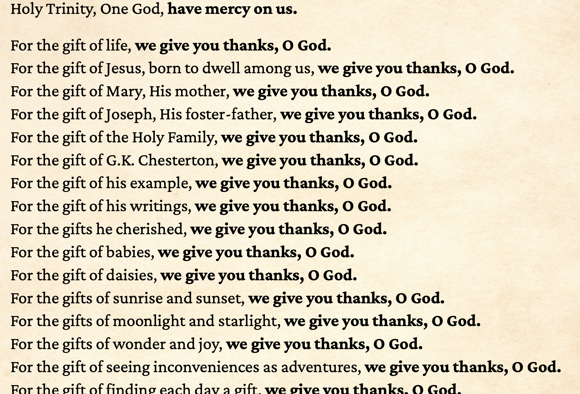 Yesterday, I was listening to the Society of Gilbert Keith Chesterton’s “Uncommon Sense” podcast as they were talking about gifts of gratitude and signing up for this year’s Advent reflections series via email.